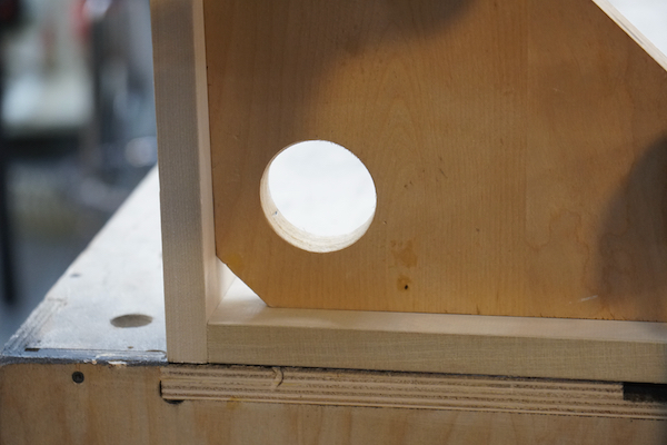 The inside corner of this Clamping Jig is cut forty-five degrees to ease pressure on the inside of corners, not cause an issue with slightly misaligned parts, and not cause issues with the face frame or glue squeeze-out.