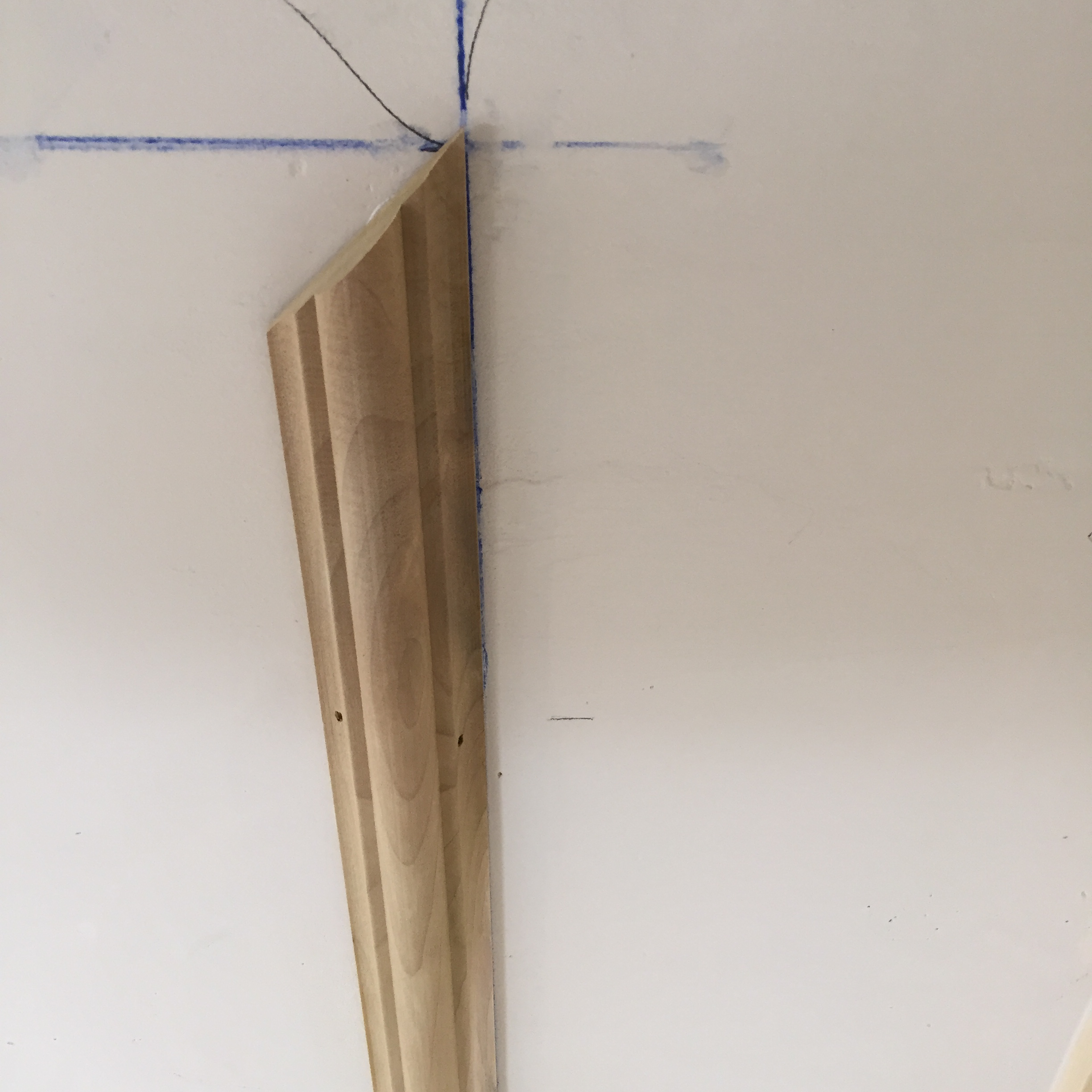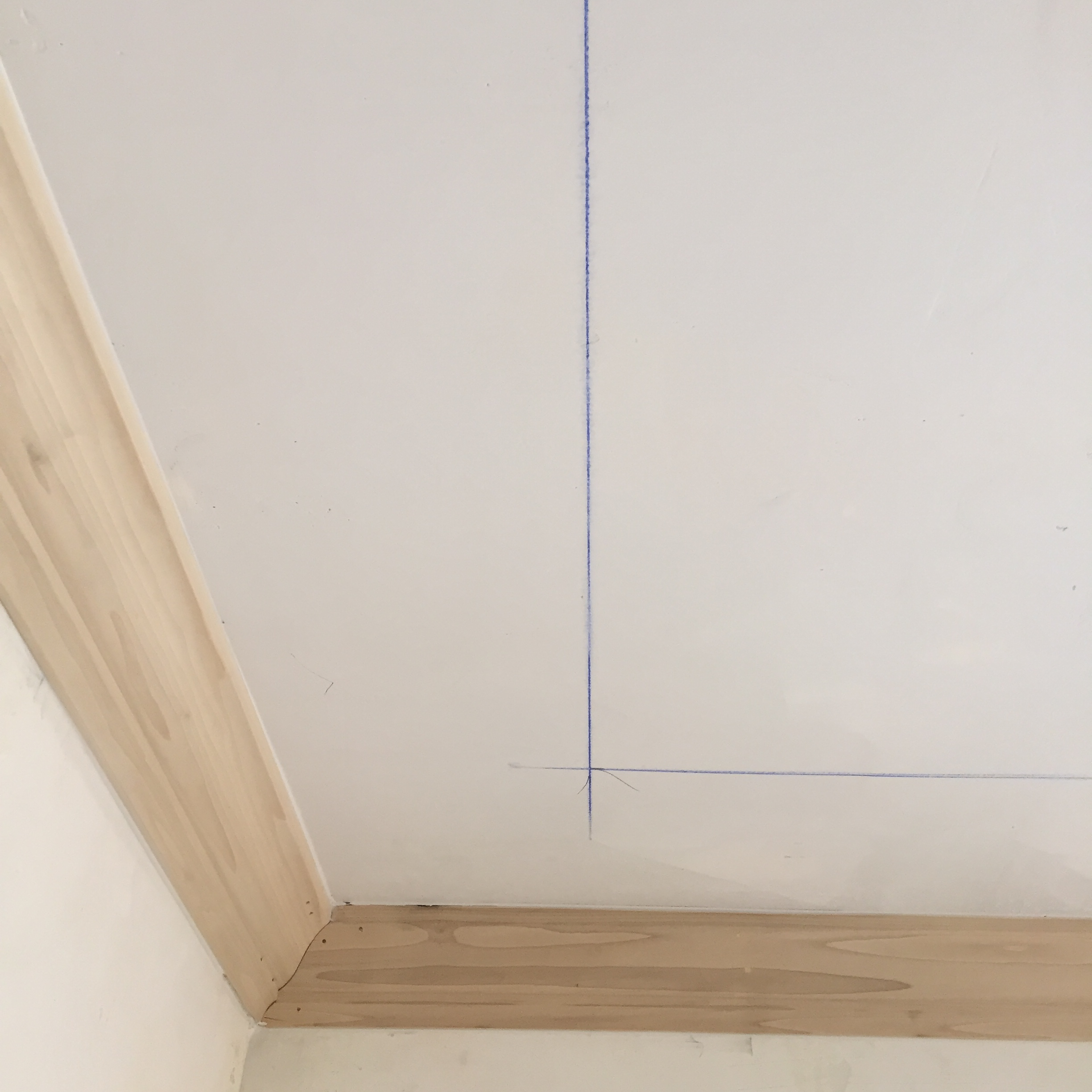 After the crown molding is applied to the room it is time to decide on your spacing for your astragal molding. For this project we chose an 8-inch spacing. The ceilings care 8 feet tall and we felt that an 8-inch spacing was a nice proportion.