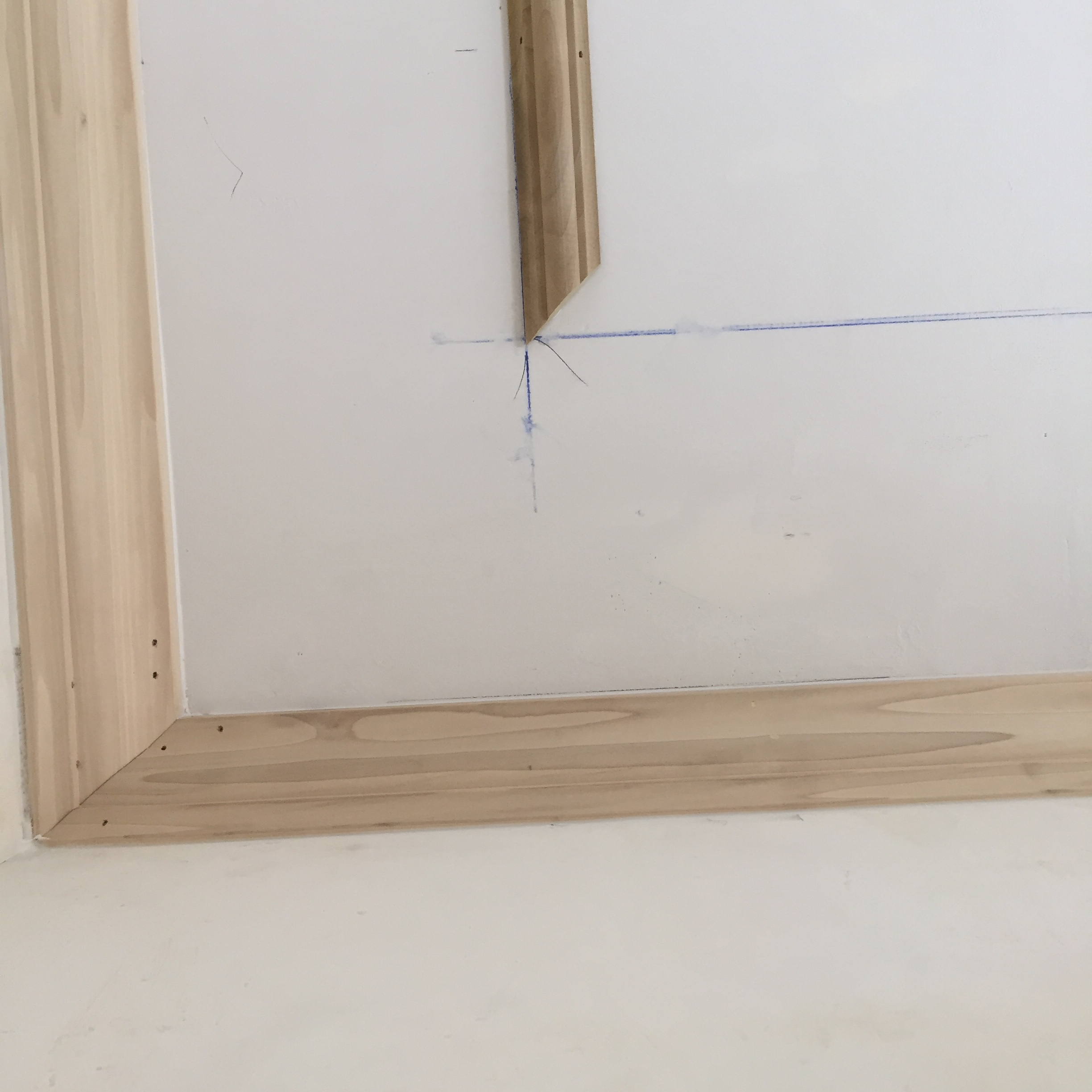 We then measured corner to corner, cut and installed two opposing astragals. Once installed we measured, cut and install the opposite two astragal moldings.