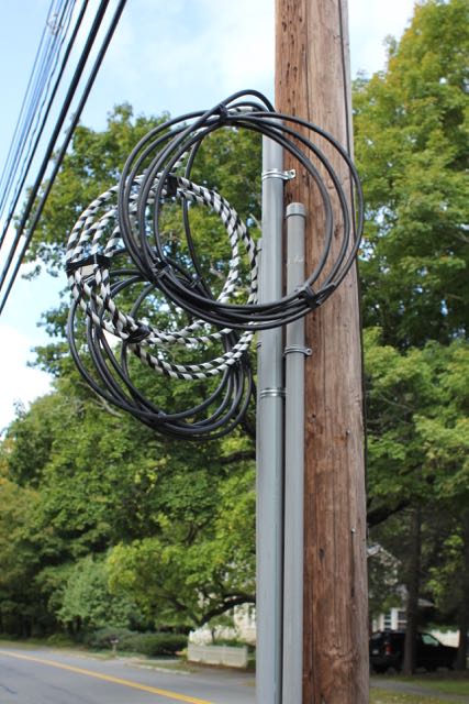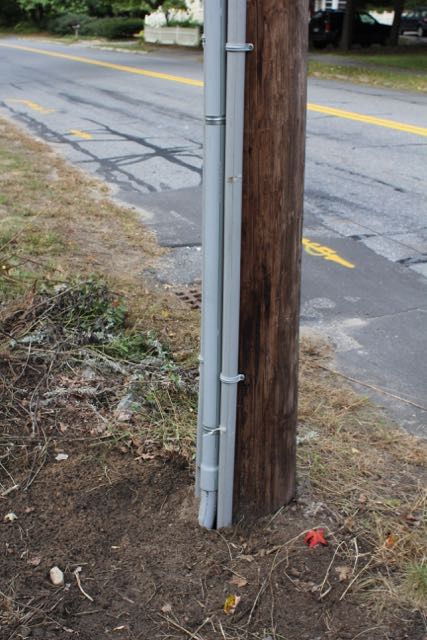 In my jurisdiction the town requires that we install four separate conduits which are compliant with the Massachusetts electric code. The four conduits to include one for electrical service, one for telephone, one for cable and one for future communications. We have to install 18 inches deep and run the conduit approximately 10 feet up the utility pole, if present.