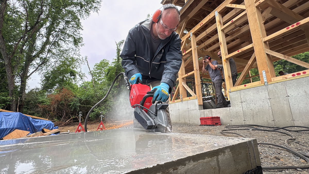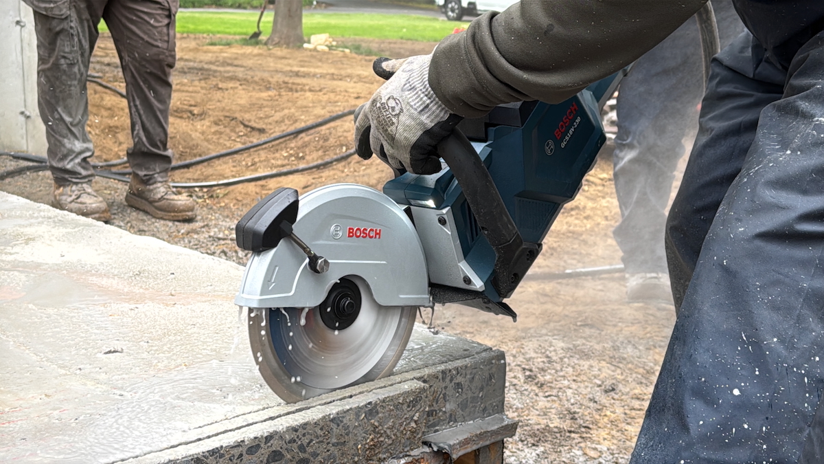 The concrete cutters were all outfitted with a fresh battery and manufacturer specific concrete or multi-material blade.