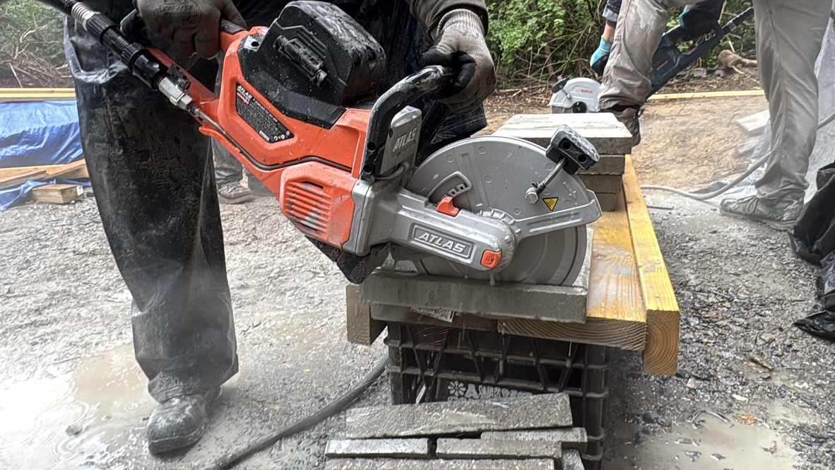 We conducted 5 cuts on 1×12 pavers to measure cutting time. Fresh batteries were used, and the test was performed by a single operator. Water and step-cutting techniques were applied during the cuts