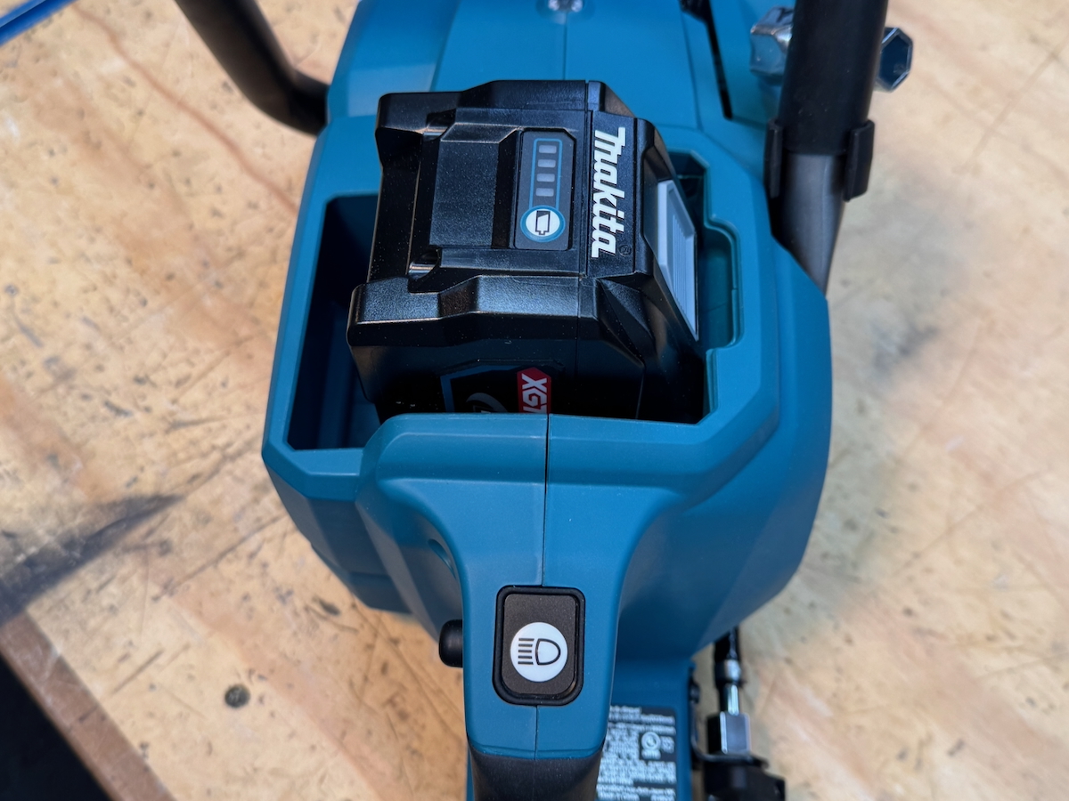 Husqvarna, Makita, and Stihl all have exposed batteries. The team expressed concerns about cleaning “slurry splatter” from these exposed areas.