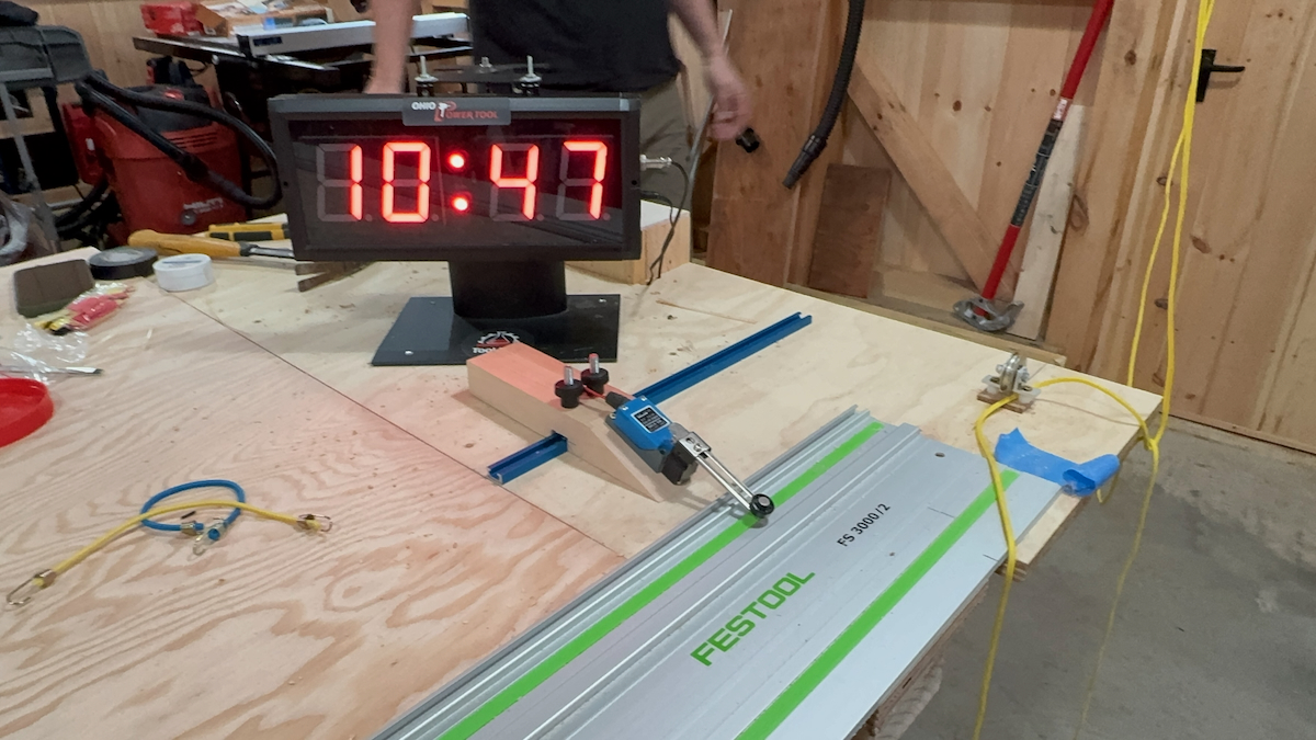 Each saw was equipped with new fine finish OEM blades, and we used Sugar Maple with a hardness of 1450 [on the Janka Scale] as our cutting medium.
