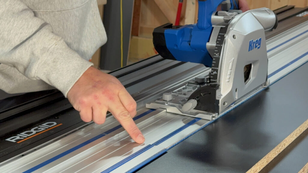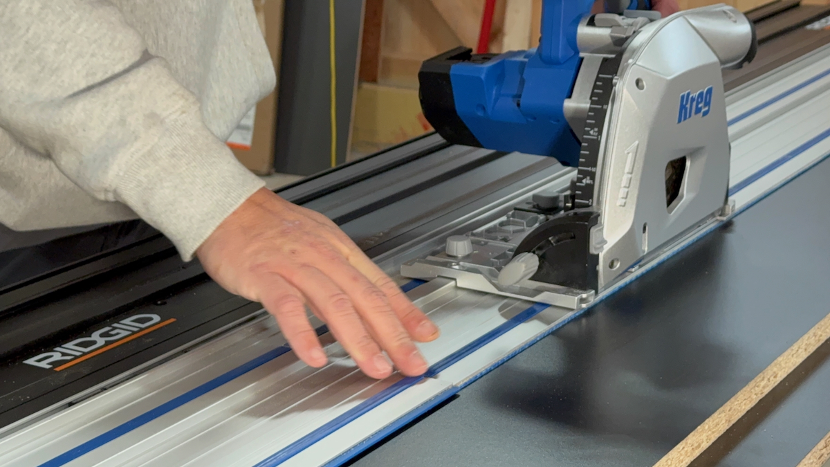 The Kreg track has a 4-piece joining rod system. Installing these rods requires precise alignment and can result in user frustration. Once joined, we notice some “lippage” on the cut side of the rail.