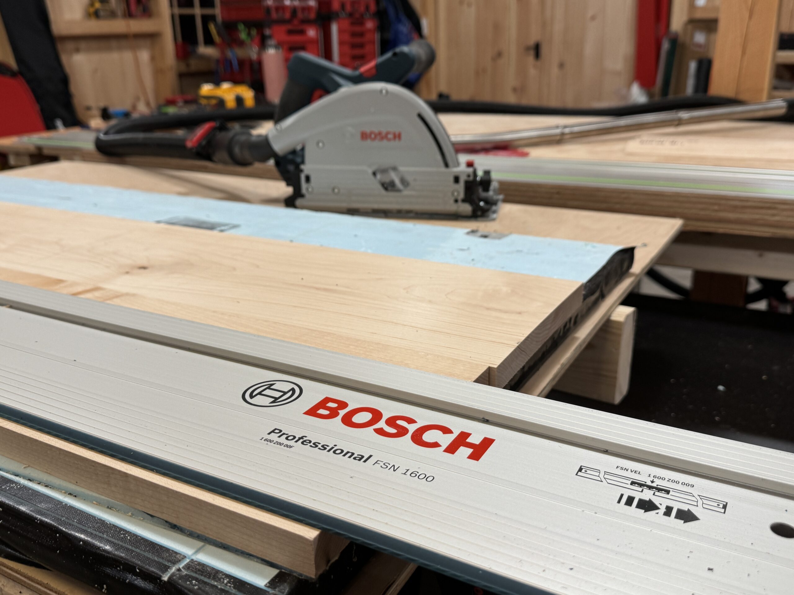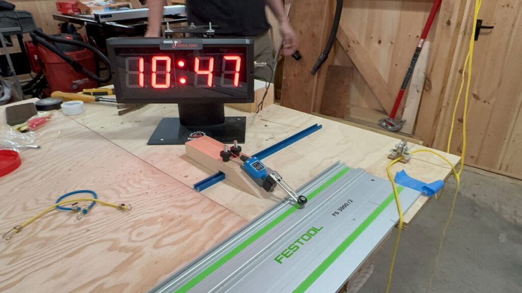 We also noticed that the Bosch track saw, while not the loudest overall, had a noticeably high-pitched, piercing tone. This higher frequency sound made it subjectively more unpleasant to use compared to other saws, even those with higher measured decibel levels. In real-world use, tone and pitch can matter just as much as volume, and the Bosch’s sharper sound stood out as the most fatiguing and least comfortable to the ear during cutting.