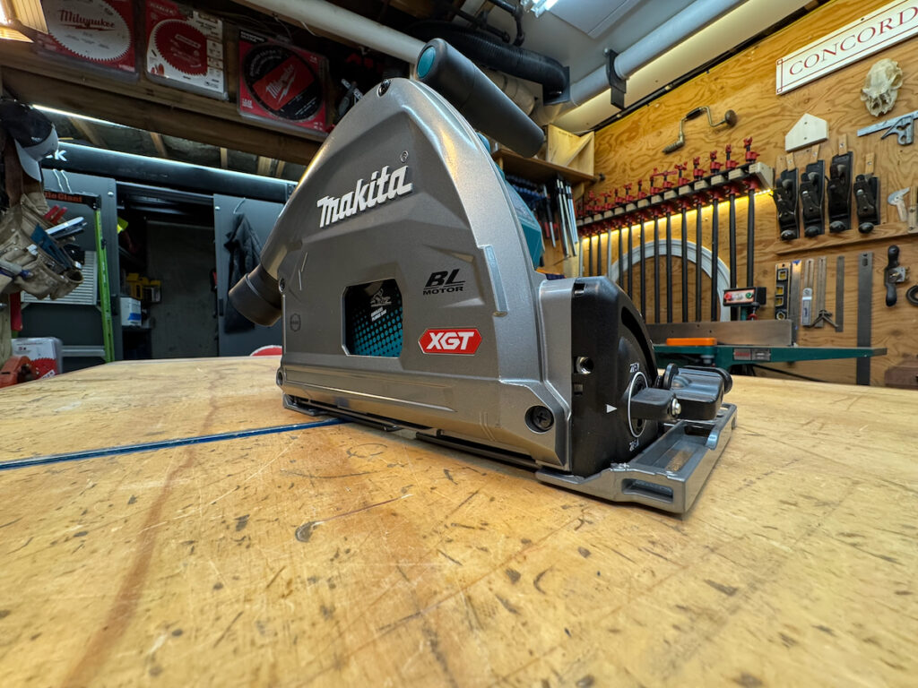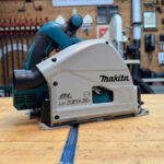 Makita’s controls are also easy to use. The “blade-down” lock is not as intuitive and requires two hands to engage. The user then needs to press the arbor lock. Most of the adjustments are easily figured out by where they are and how they interface with the saw. However, the tolerances feel a little looser than the Mafell and Festool.