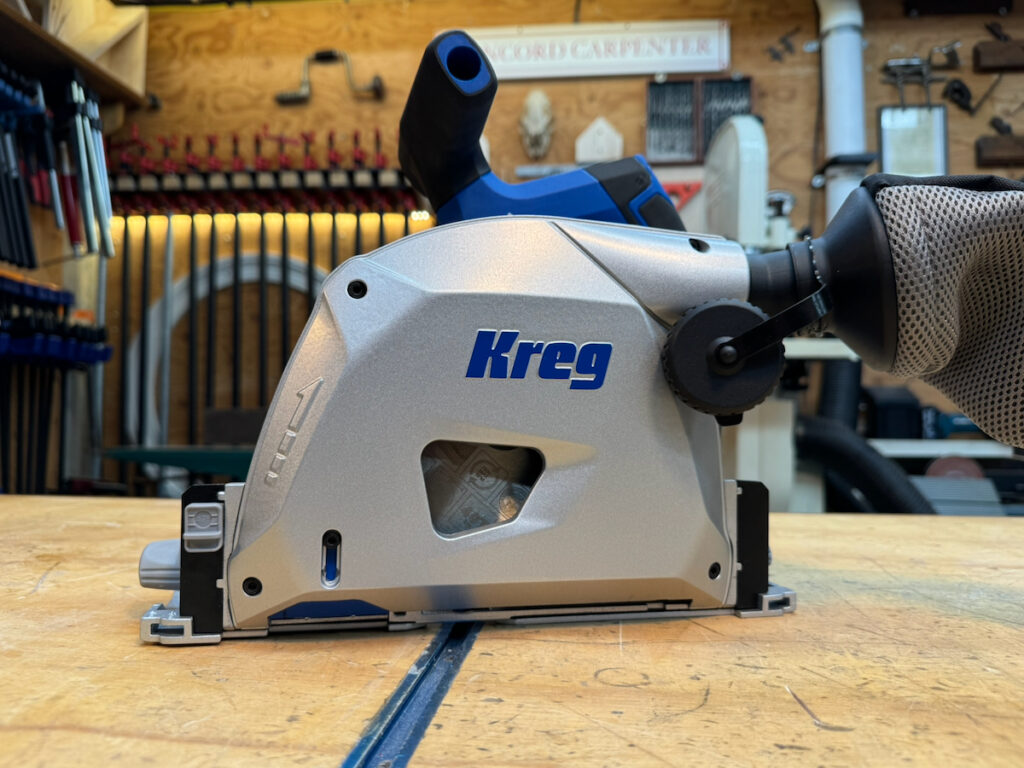 Kreg employs a multi-piece joining system similar to Makita’s; it operates smoothly but produces audible feedback when sliding over the track lip and has limited compatibility.