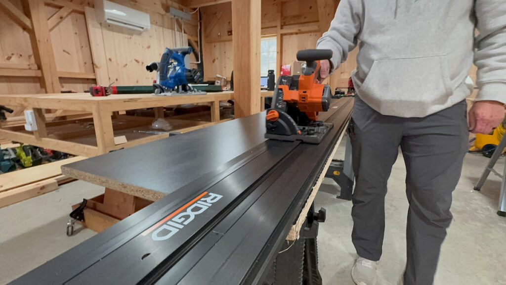 Ridgid and Ryobi assemble well, but we noticed that the saws tend to catch slightly at the joint where the top black strip ends on one track and begins on the other. To prevent this, you’ll need to loosen the saw’s alignment on the guide rail, which results in more side-to-side play than our team would prefer.