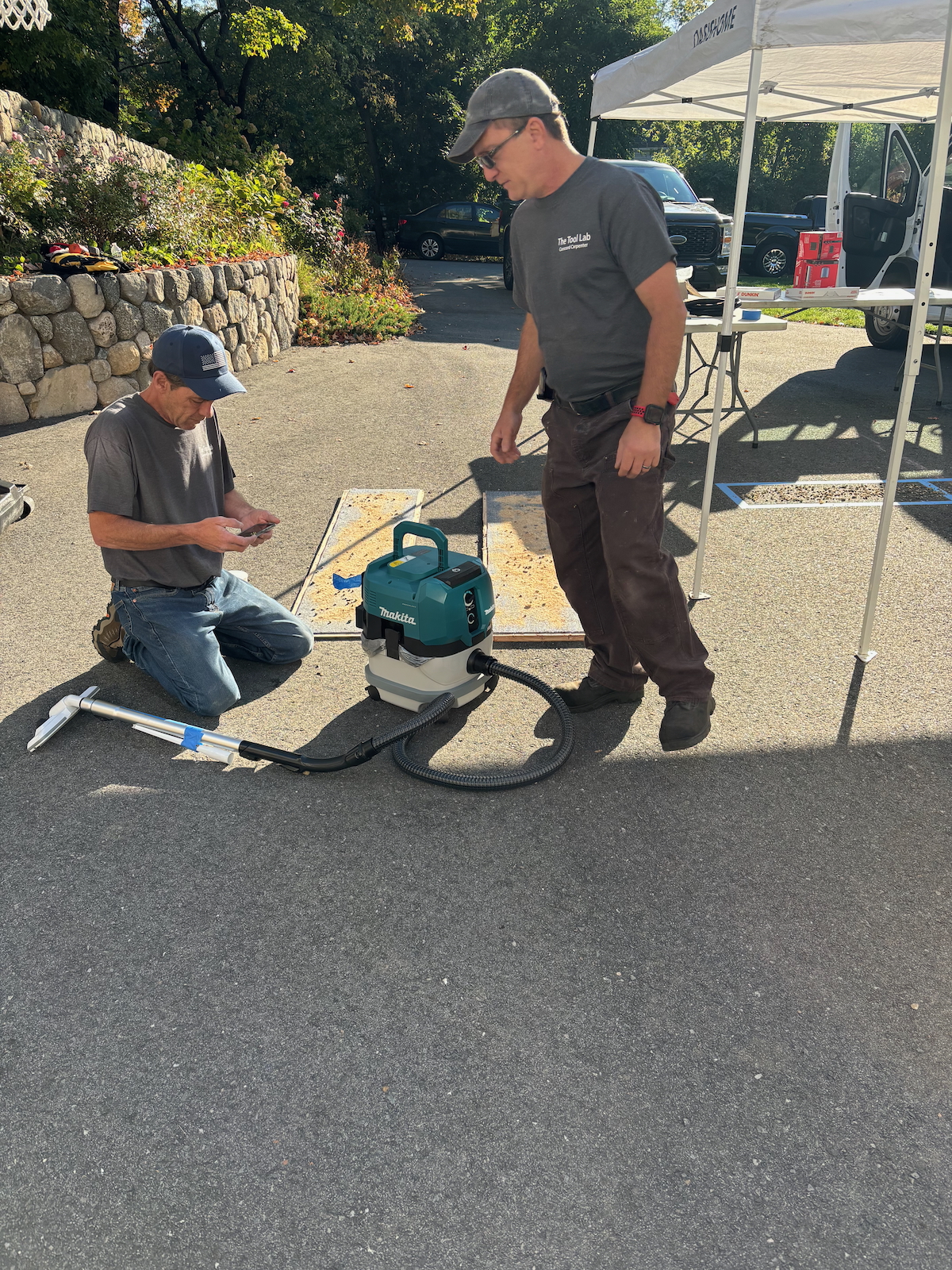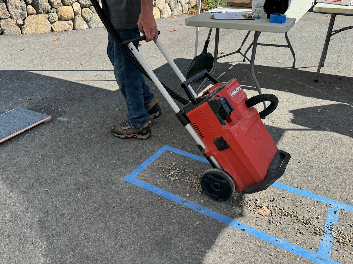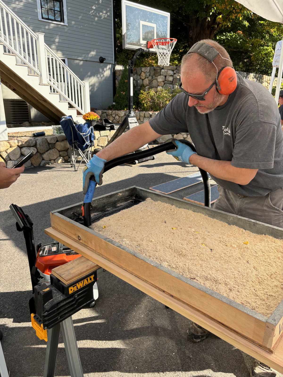 To simulate real-world job site debris, we constructed a sawdust box using 2 gallons of fine sawdust and added additional job site debris material.