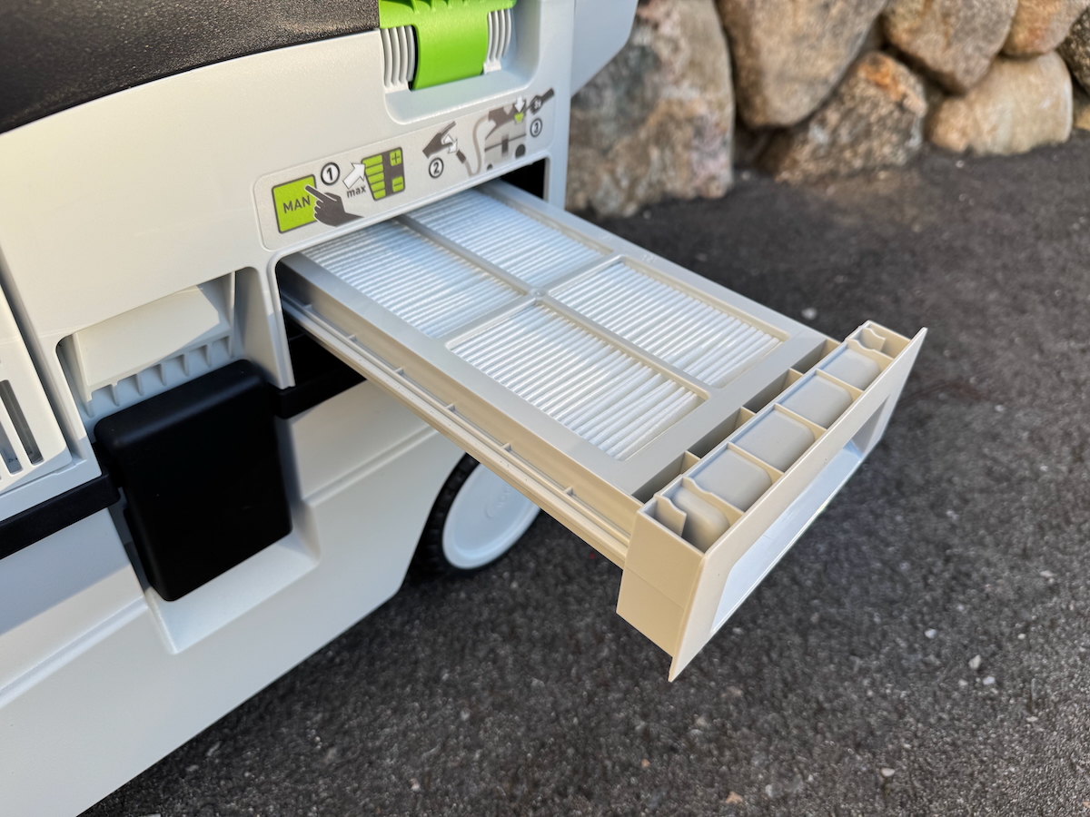 The Festool is feature-rich, and ran top marks across the board. It has a great control interface, well-established Bluetooth, an easy-to-change filter, and its hose quality is in a category of its own.