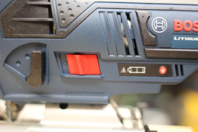 The JS120 is a barrel grip jigsaw, is easy to grip, and super nice for upside-down cutting applications. I’ve never been a huge fan of barrel grip jigsaws and can not get excited about the ON-OFF switch location. Its located on the left side of the tool, side-motor housing, which clearly favors right-handed operators.