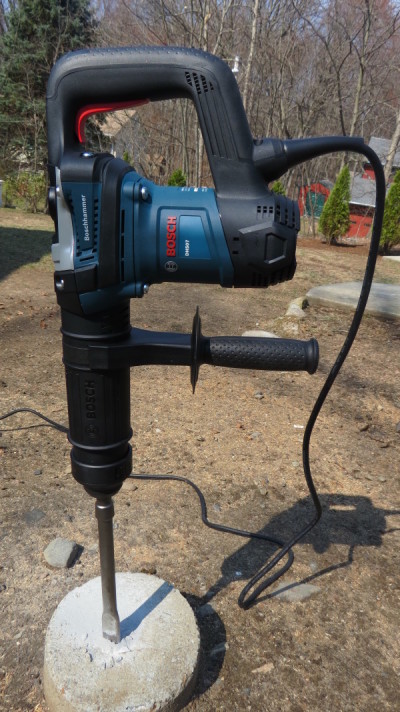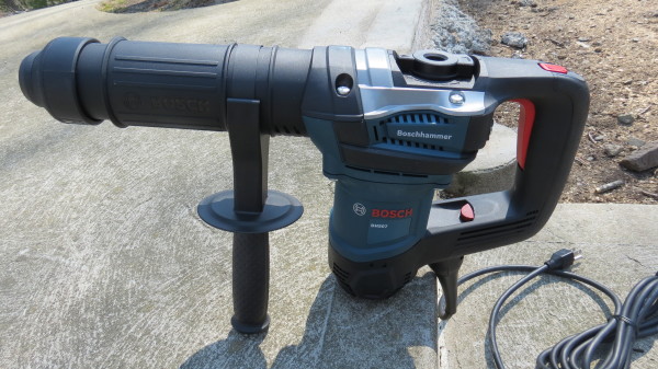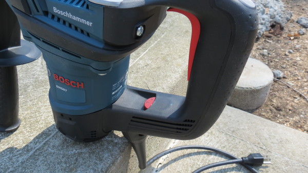 I was able to use the Bosch DH507 Demo Hammer on 8’’ round cement footings and some rock ledge. I had an excavator coming in to dig a foundation and remove the ledge. In the mean time I decided it would be a nice playground for the HD507 to warm up. Right out its case the demo hammer has good ergonomics, comfortable grips on the trigger handle, and an auxiliary side handle. In my opinion, the 12.4 weight of this demo hammer is well balanced for all-day use. Also, the auxiliary side handle has an over molded plastic stopper so your hand can rest comfortably on the tool while your other hand grips the trigger.