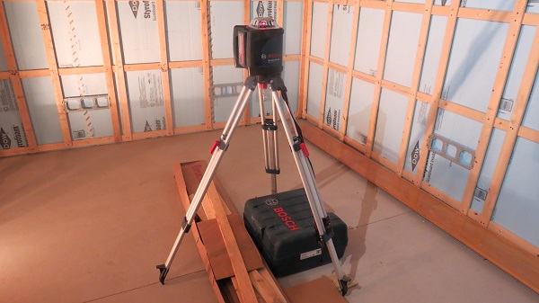 I was able to use the tripod with the Bosch GRL-500 HCK Rotary Laser Kit on this project as well. We were installing strapping around the room. Mounting the laser to the tripod was easy. The tripod was solid and well made. It also folds up to a compact size and has a shoulder strap available. Overall the tripod felt solid, no issues with adjustments and the protector caps on the feet is a nice touch from Bosch.