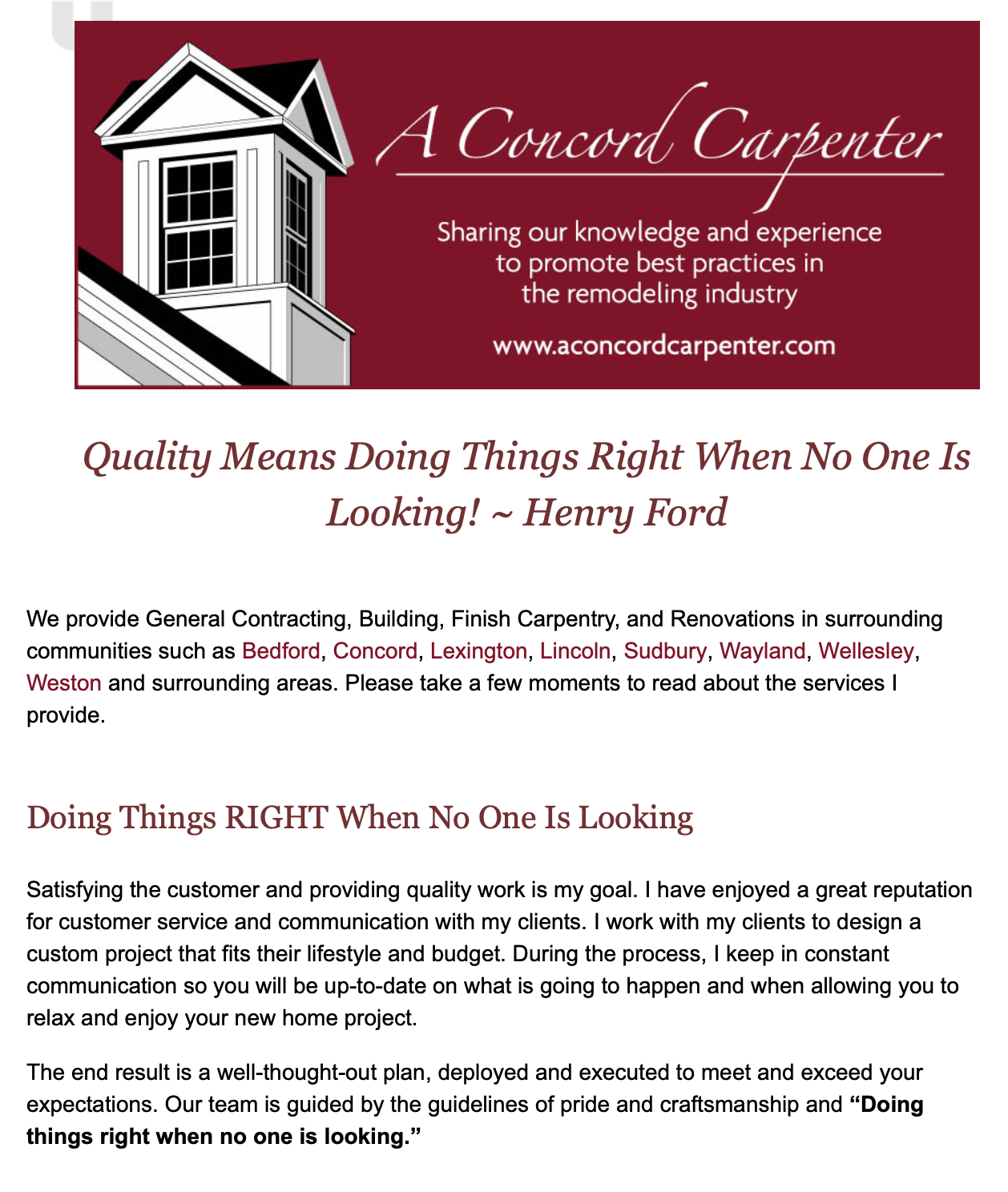 A professional website spreads brand awareness and shows up in internet searches.  When people in my town search for a carpenter the search term often looks like “Carpenter, Concord, MA.” Guess who’s website shows up top? Mine: Concord Carpenter.
