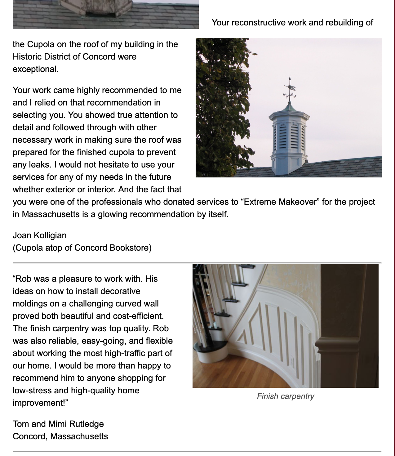 A professional website spreads brand awareness and shows up in internet searches. When people in my town search for a carpenter the search term often looks like “Carpenter, Concord, MA.” Guess who’s website shows up top? Mine: Concord Carpenter.