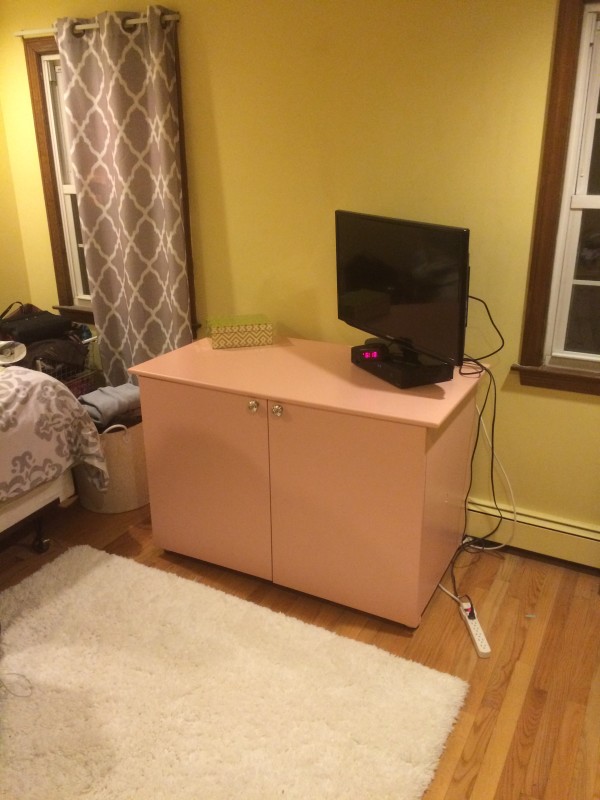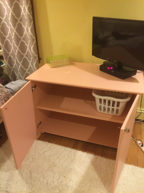 In my case, the customer wanted the cabinet painted. This was my reasoning for going with AC plywood instead of a birch or maple which takes a stain much nicer. We used Sherman Williams primer, tinted to the color she wanted. Applied one coat of primer, then sand. After the second coat of primer we sanded again and then added two coats of paint giving it a nice color.