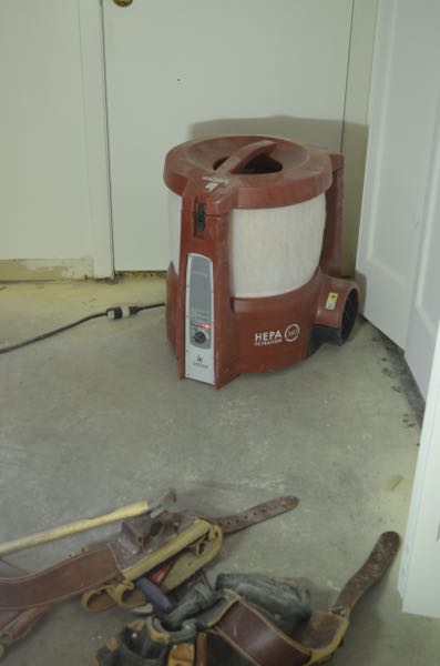 In addition to the many Dust Control Best Practices that we follow, we also use an HEPA air scrubber, called BuildClean.