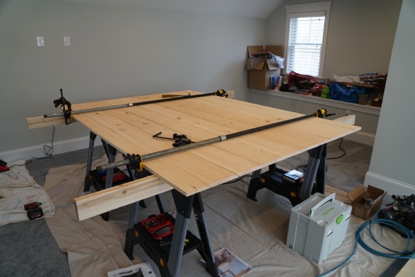 Prior to cutting the wood, assemble your boards on a flat surface. Locate the center of the door and measure left and right. Then rip the boards on a table saw to that measurement. This ensures that both the left and right sides of the door are the same width and thus proportional.
