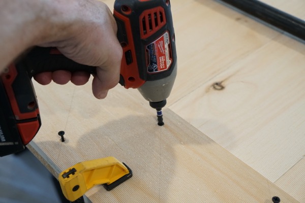 Dry fit all of your parts before adding screws. On board and batten doors you do not need glue. Tip: to keep the door parts from moving consider clamping it to your workbench.