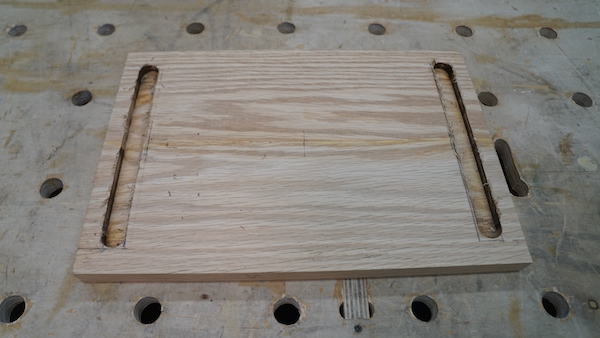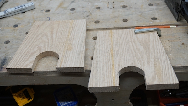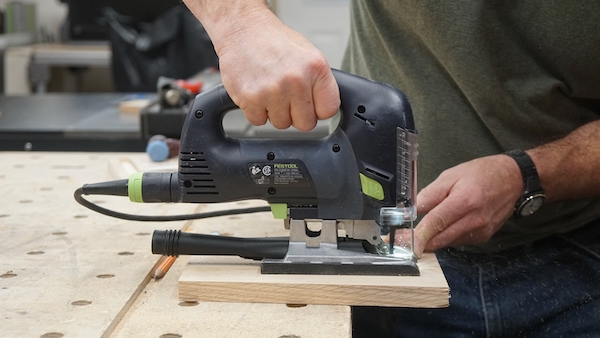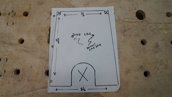 I used a round measuring cup and combination square to mark out a decorative cut out, cutting it with a jigsaw.
