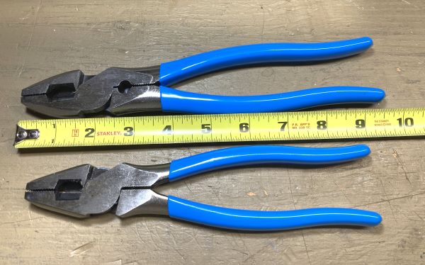 Nine-ish inches is the “standard” length for lineman’s with most electricians, while they are also available in other sizes. Lineman’s in the 8-inch range are used with some frequency in many trades, but I haven’t seen too many of them in the electrical trade over the decades, at least in my neck of the woods. But I definitely advise electricians to try them out!