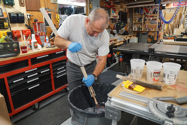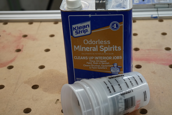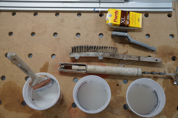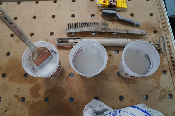 After a day of soaking, I set up two more Quart buckets of paint thinner and start the manual cleaning process.