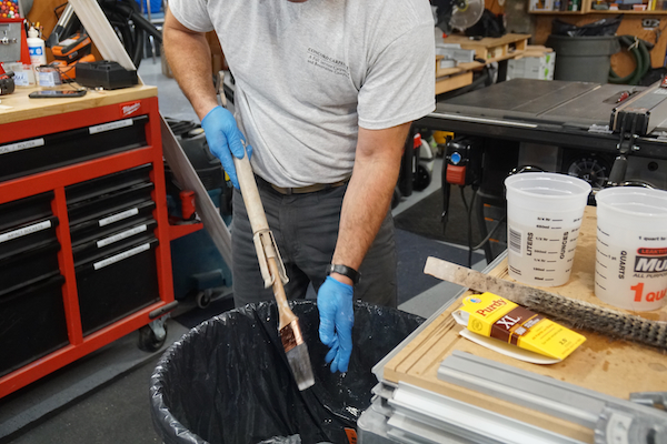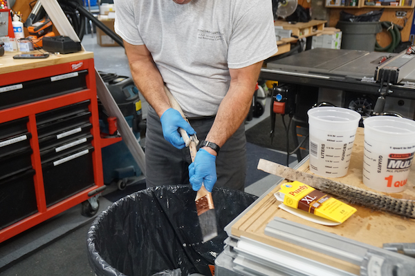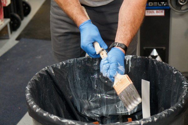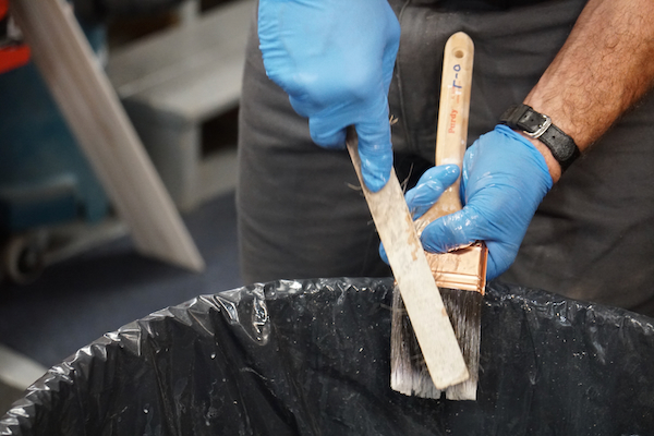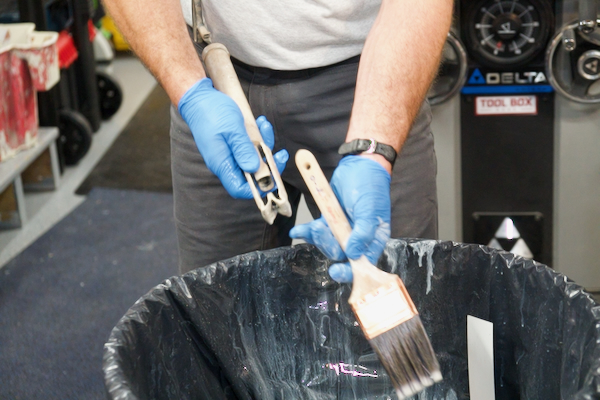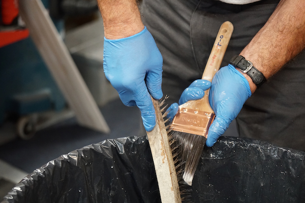 Once done cleaning recycle the paint thinner back into its container. I keep two containers. One with fresh paint thinner and one with recycled thinner. The paint in the used thinner will eventually settle to the bottom of the container allowing it to be reused indefinitely.