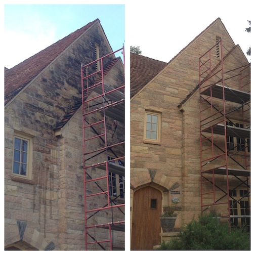 Stone is a building material as old as man himself. It was used as the some of the first tools as well. It is a very durable and attractive material. I works very well to construct building facades. It is attractive by itself or when used as an accent in a brick facade. Unfortunately, stone can also get dirty over time and require cleaning. Today we’ll show you an easy method for cleaning stone masonry at your own home.