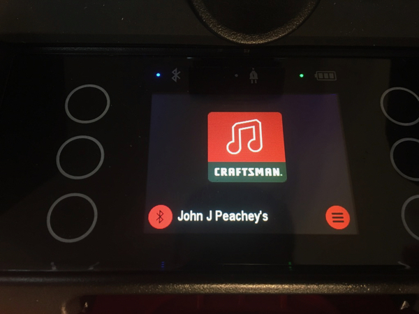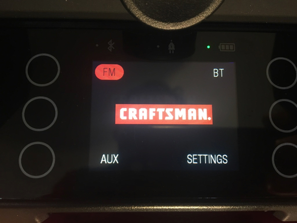 Craftsman designed an impressive full-color screen to operate the radio. This screen is touch sensitive and it flips orientations based on how the radio itself is oriented—it was very impressive watching the screen change directions when I moved the radio from standing upright to lying down.
