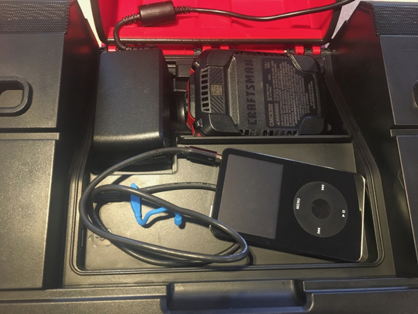 Craftsman also included a 3.5mm Auxillary port inside the storage compartment that worked fantastically for playing music from my older generation iPod Classic and iPod Nano. You will need to provide your own USB cord and AUX cord. I think the storage compartment was perfectly designed for utility and convenience.