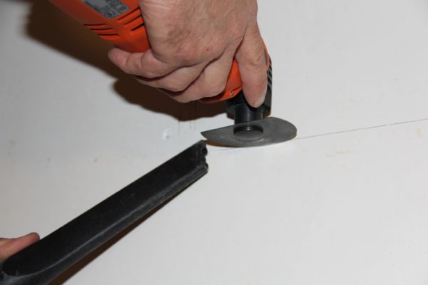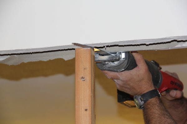 Using a multi-tool to completely cut through the wall board all along your layout lines makes for a cleaner job and more accurate cut outs.