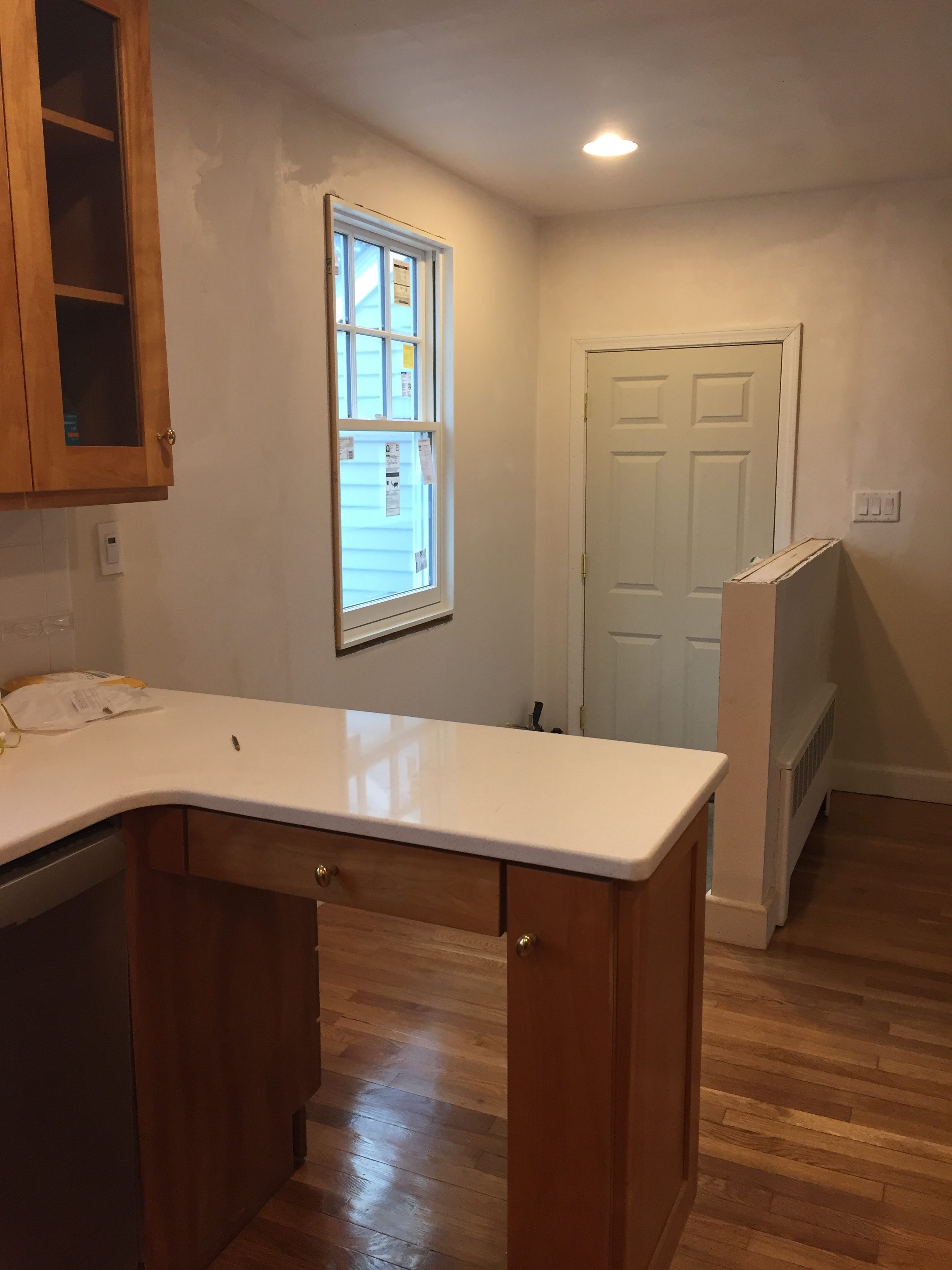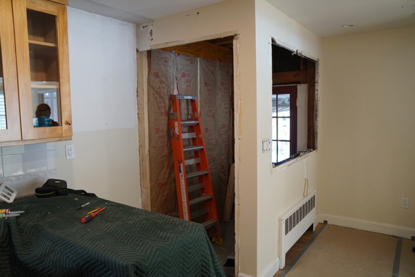 The existing wall had some electrical outlets and a radiator installed on one side. In order to save plumbing, electrical and plaster costs we decided to remove the top portion of the wall and save the bottom.