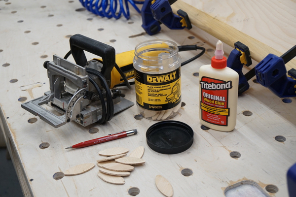 I use a biscuit joiner, to install a few biscuits, on the long sides. I do this less for joint strength, and more for alignment during glue up, it helps keep things in place.