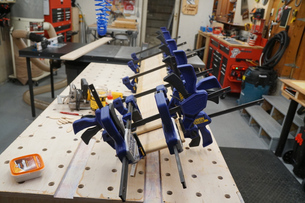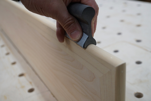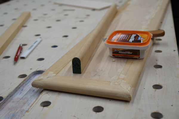 In order to avoid having to deal with end grain, at the end of the half wall from a solid piece of wood, I use Birch plywood and Poplar ½ round applied nosing’s.