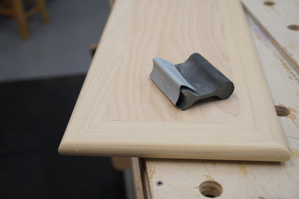 It’s the finishing touches that make a projects look correct. I always install the scotia molding to the long sides first and then finish with the smaller double-mitered end piece. Make sure to hold the Scotia molding in a tight, upward fashion to create a tight fitting seam.