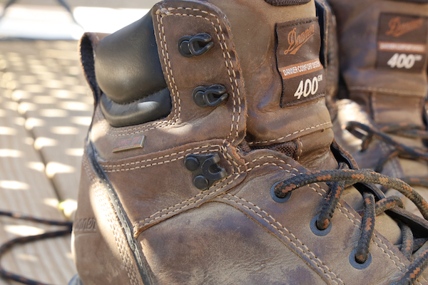 So when Danner offered me an opportunity to review one of the boots in their Steel Yard line, I looked for a pair better-suited for the winter months. I had two criteria: I wanted an insulated boot that had good traction on ice, and also on the job site. And, of course, they had to be waterproof. They sent me a pair of the 6” Brown Steel Toe 400G. They developed the Steel Yard line to offer tradesmen a solution who works in a variety of job site conditions. There a variety of models within the Steel Yard line from insulated to non-insulated, steel-toe to plain-toe, one model offers met guard protection, and a few are Electrical Hazard (EH) rated. Most of the models are lace-up; there are a couple of Wellington-style options available as well.