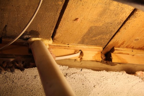 House wall voids and other hidden spaces can be accessed by drilling a series of small (1/8 inch) holes and puffing Boric Acid into the cavity. If you suspect the nest is in a wall, drill and treat at least 3-6 feet on either side of where ants are entering so as to maximize the chances of contacting the nest. Carpenter ants prefer to travel along wires, pipes and edges. If you suspect the nest location is in a wall, also treat behind pipe collars and behind electrical switch plates/receptacles.