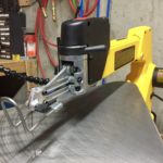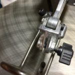 This saw only takes 5” plain end blades and they were easily secured in the blade holder with two thumbscrews. Throughout a month of cutting on this saw I have yet to have a blade loosen on me in the holder, which is important when making precise cuts. The blade-tension lever is conveniently placed in the front of the saw on the upper arm. The lever is clearly marked with lines and numbers, making tightening of the blade easy and consistent. It also should be noted that the tension lever can be adjusted while the saw is running. This is a nice feature, where if the blade wasn’t tracking well, you can easily add or release tension as needed without having to stop the saw.