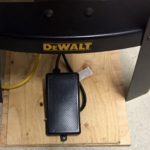 To take care of this issue I purchased a dead-man pedal. Now when I’m ready to make a tough cut I can have both hands on the piece and pressing down the pedal powers on the machine. In the same respect if I run into a problem, like the blade snapping or a pinched blade that lifts my work piece off the table, dropping my foot off the pedal immediately kills the machine.