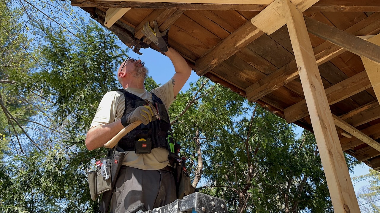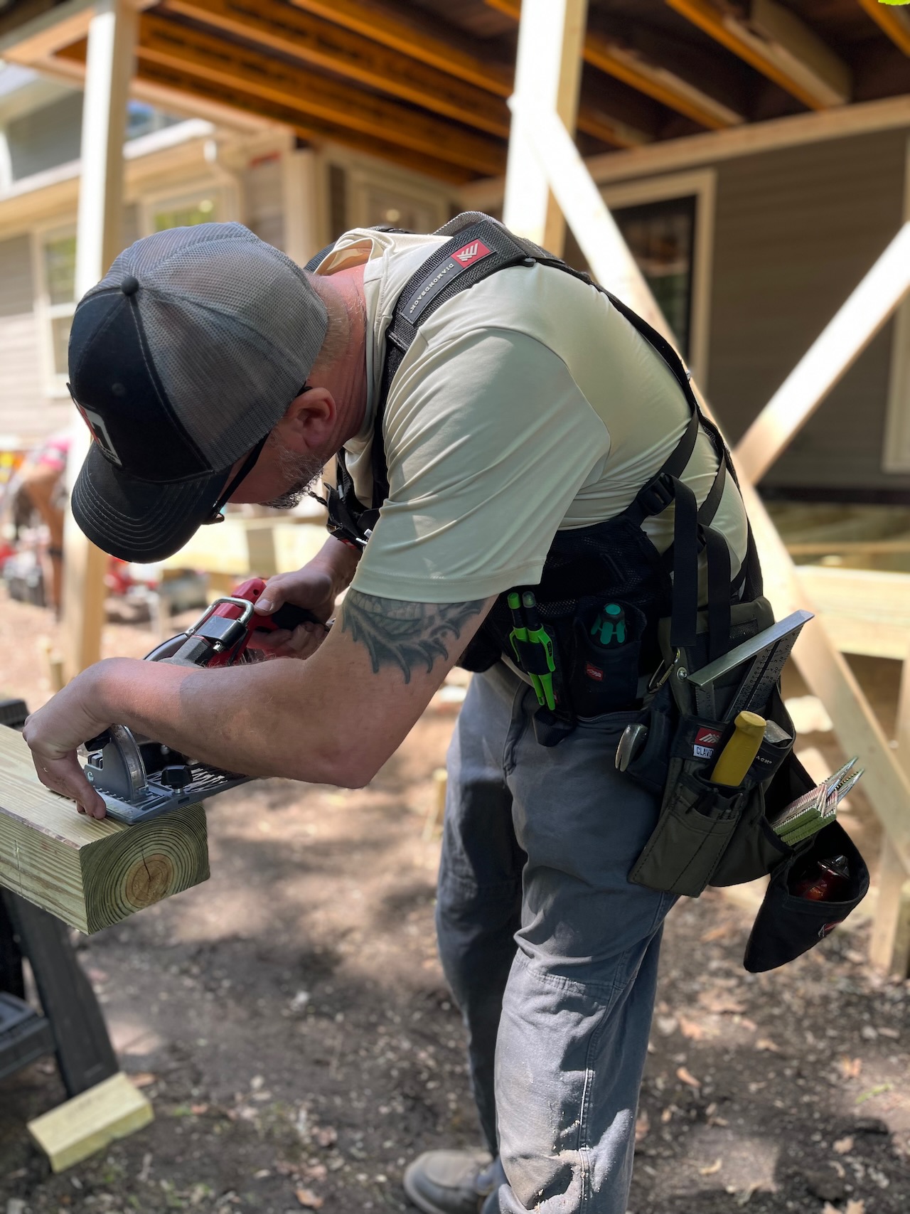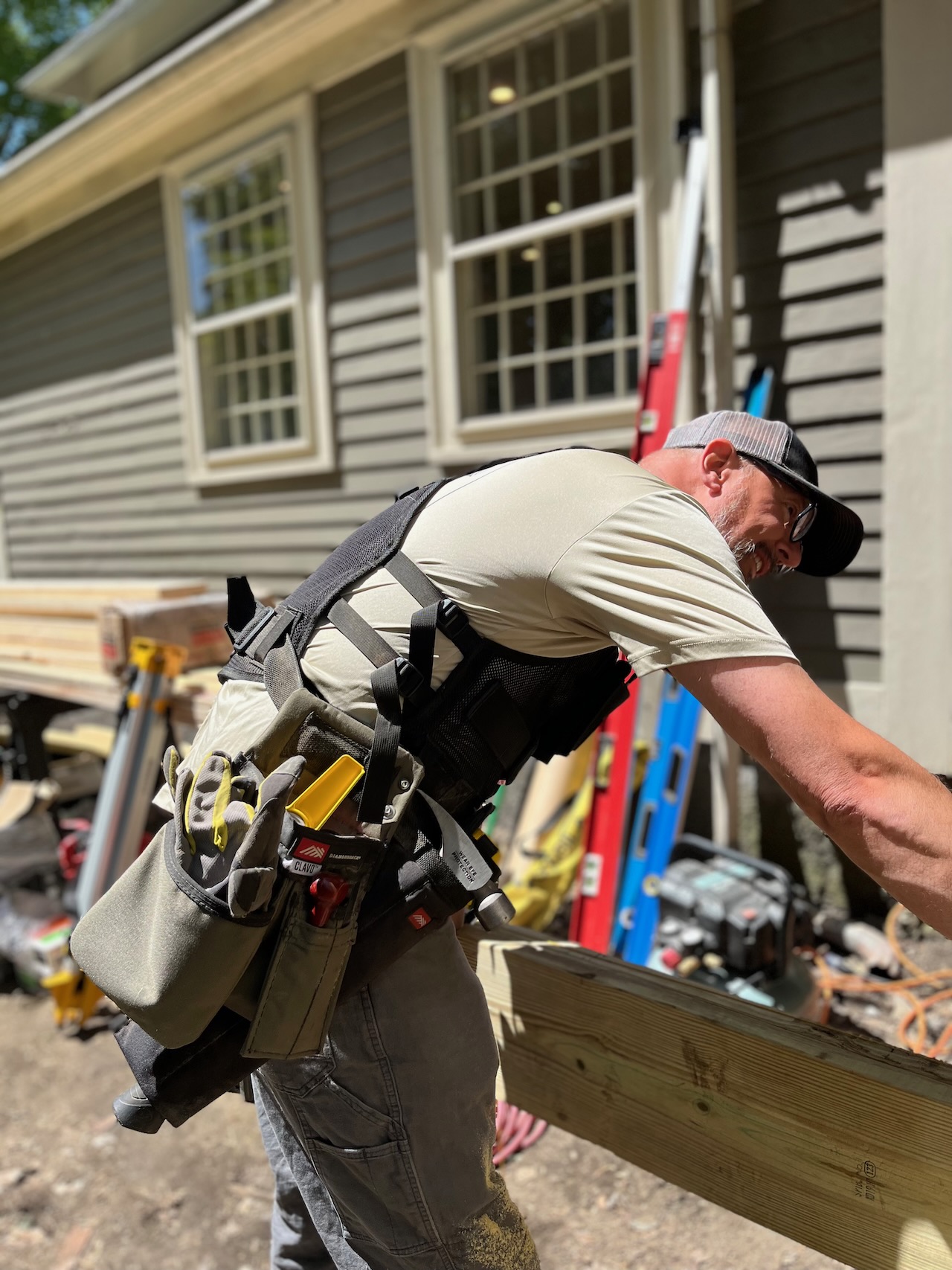 A few things I did notice were a lack of storage for bulk fasteners and a full-sized slot for a speed square. While it’s made for trim carpenters, I’ve been wearing it to do a demo and frame all the way to the finish. I added a DB 722 Slingshot to the outside of the left pocket for fasteners, which helped immensely and learned to live with my square sticking up a bit. Rob and I are considering a second vest and using the Artisan bags, for carrying a heavier load, for framing and remodeling work, and dedicating the Dos Clavos to a finished setup.