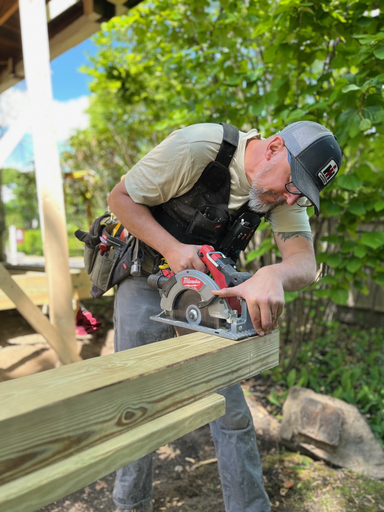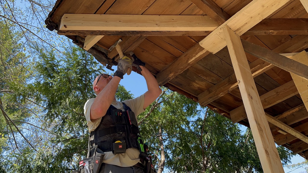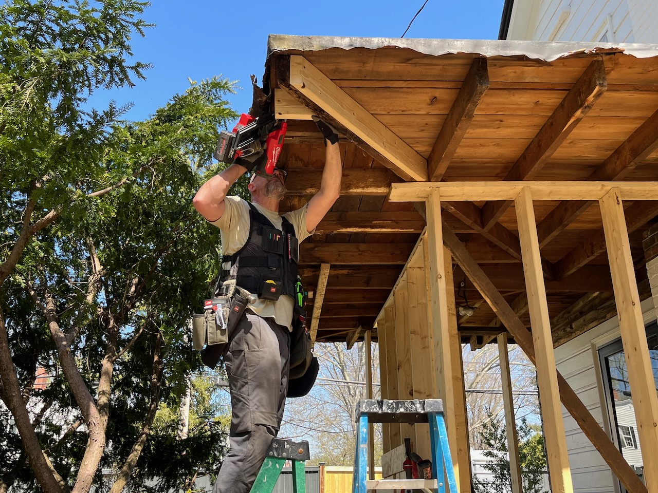 A few things I did notice were a lack of storage for bulk fasteners and a full-sized slot for a speed square. While it’s made for trim carpenters, I’ve been wearing it to do a demo and frame all the way to the finish. I added a DB 722 Slingshot to the outside of the left pocket for fasteners, which helped immensely and learned to live with my square sticking up a bit. Rob and I are considering a second vest and using the Artisan bags, for carrying a heavier load, for framing and remodeling work, and dedicating the Dos Clavos to a finished setup.
