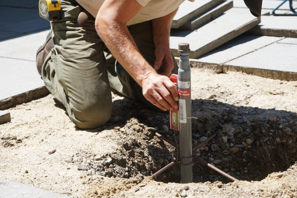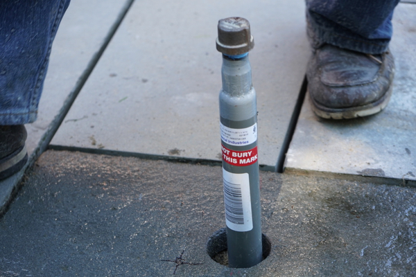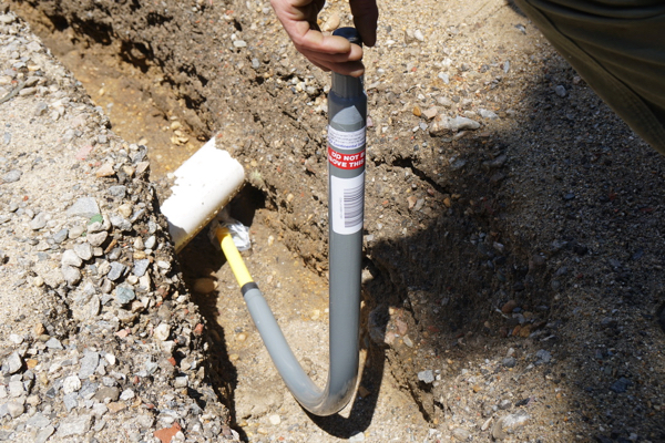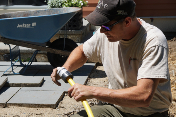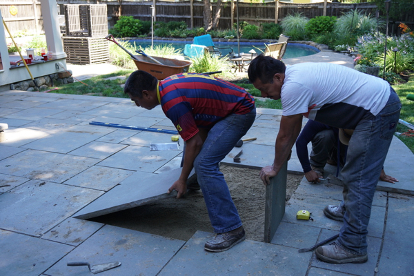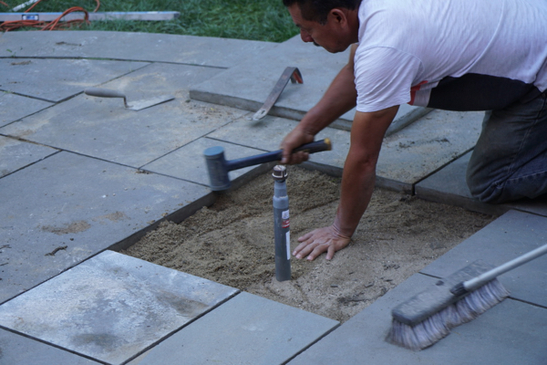 The client wanted to center the Infinite fire bowl in the center of the patio but closer to the outer edge, and they wanted it connected to the natural gas of their house. This meant that we had to install underground natural gas pipe to the fire bowl from the house.
