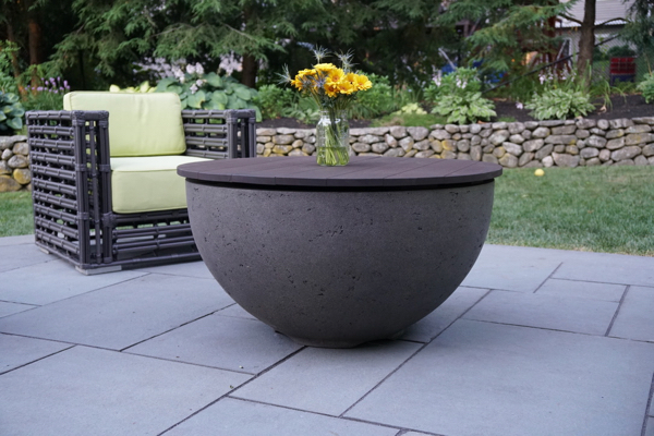Eventually, our client decided on the Infinite style fire bowl for their patio redesign. The Infinite fire bowl has a simple shape that fit perfectly into the new design.