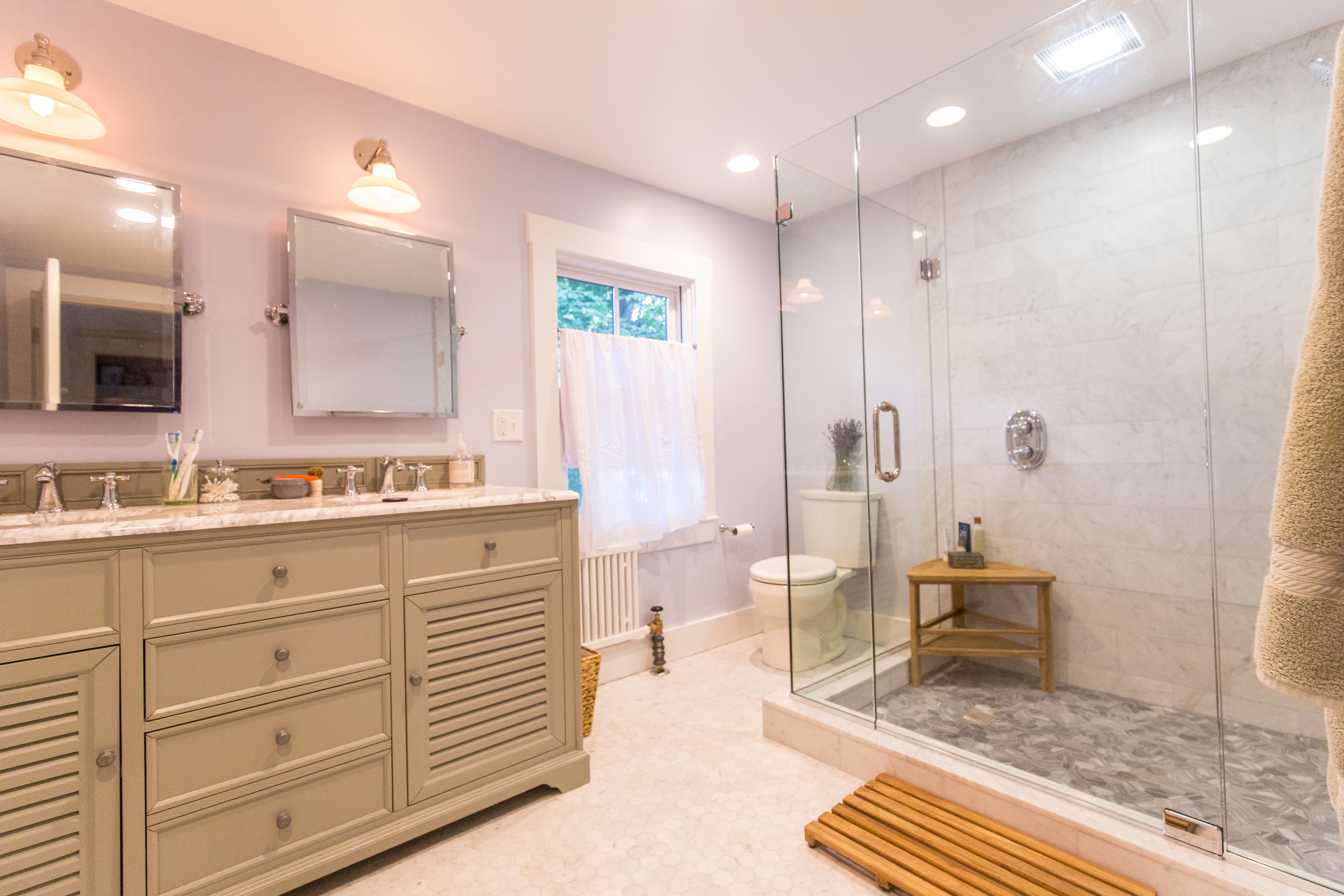 Those heated floors were a game-changer. Once we got used to life without chilly tile floors, there was no going back. We never even used the other bathroom as a bathroom — it just became a giant storage closet (albeit one with a toilet).