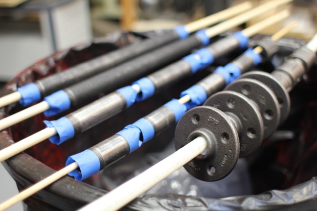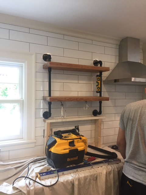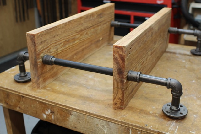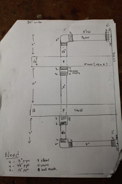 Use a level on the wood shelving and on the pipes [magnetic torpedo level works great] to ensure everything is square and level.
