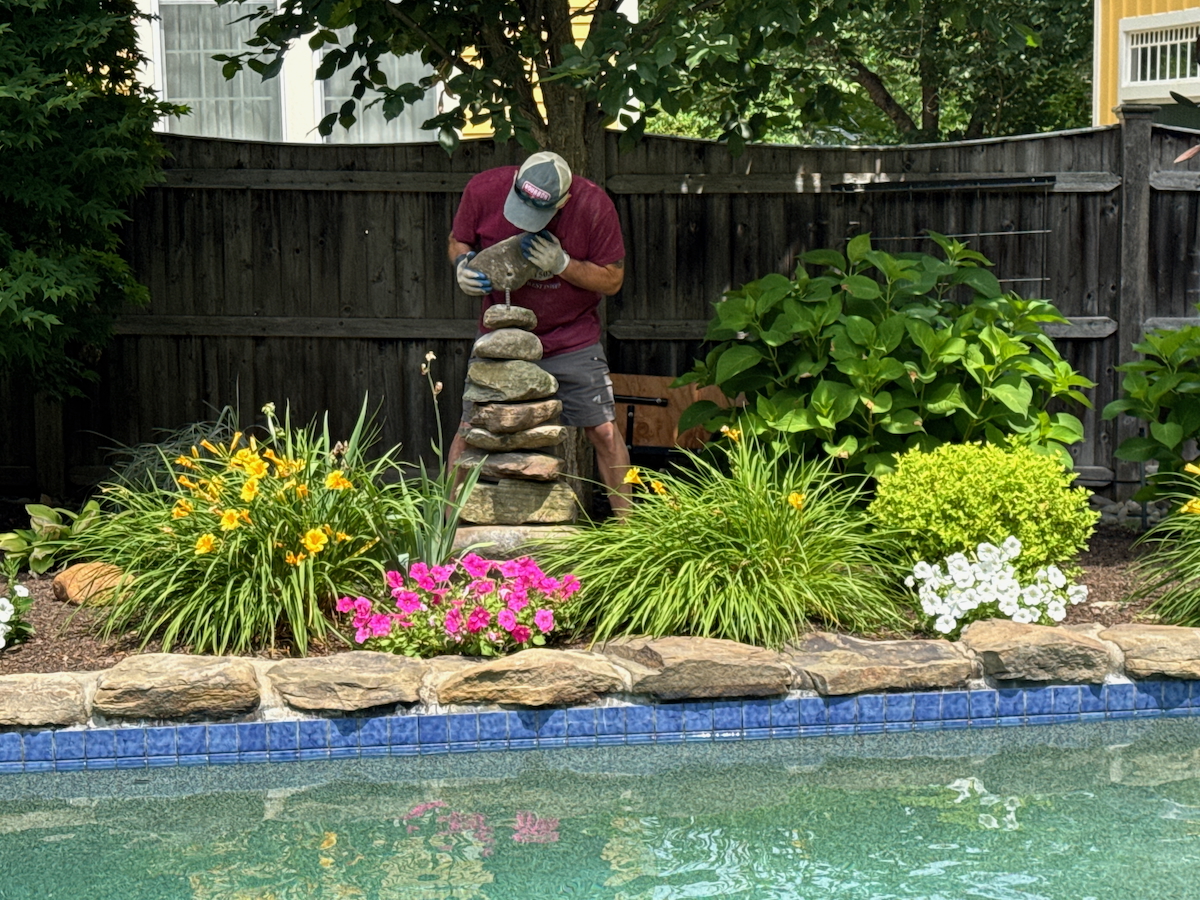 In some cases, I used the 3 lb. hammer to chip off a bit of excess stone or to create a flatter surface so the rocks would sit more securely. The goal is a natural yet stable appearance.