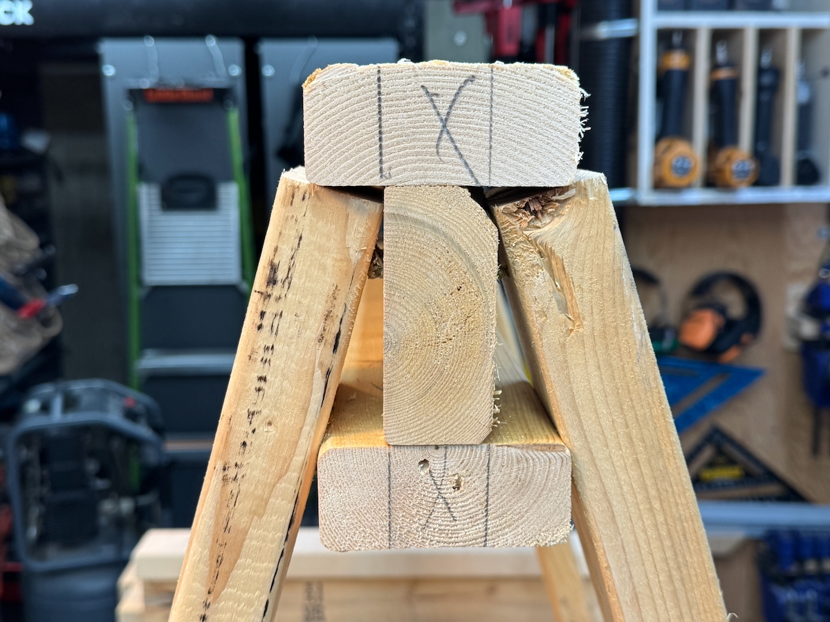 Stacking Sawhorses With Stretchers Applied