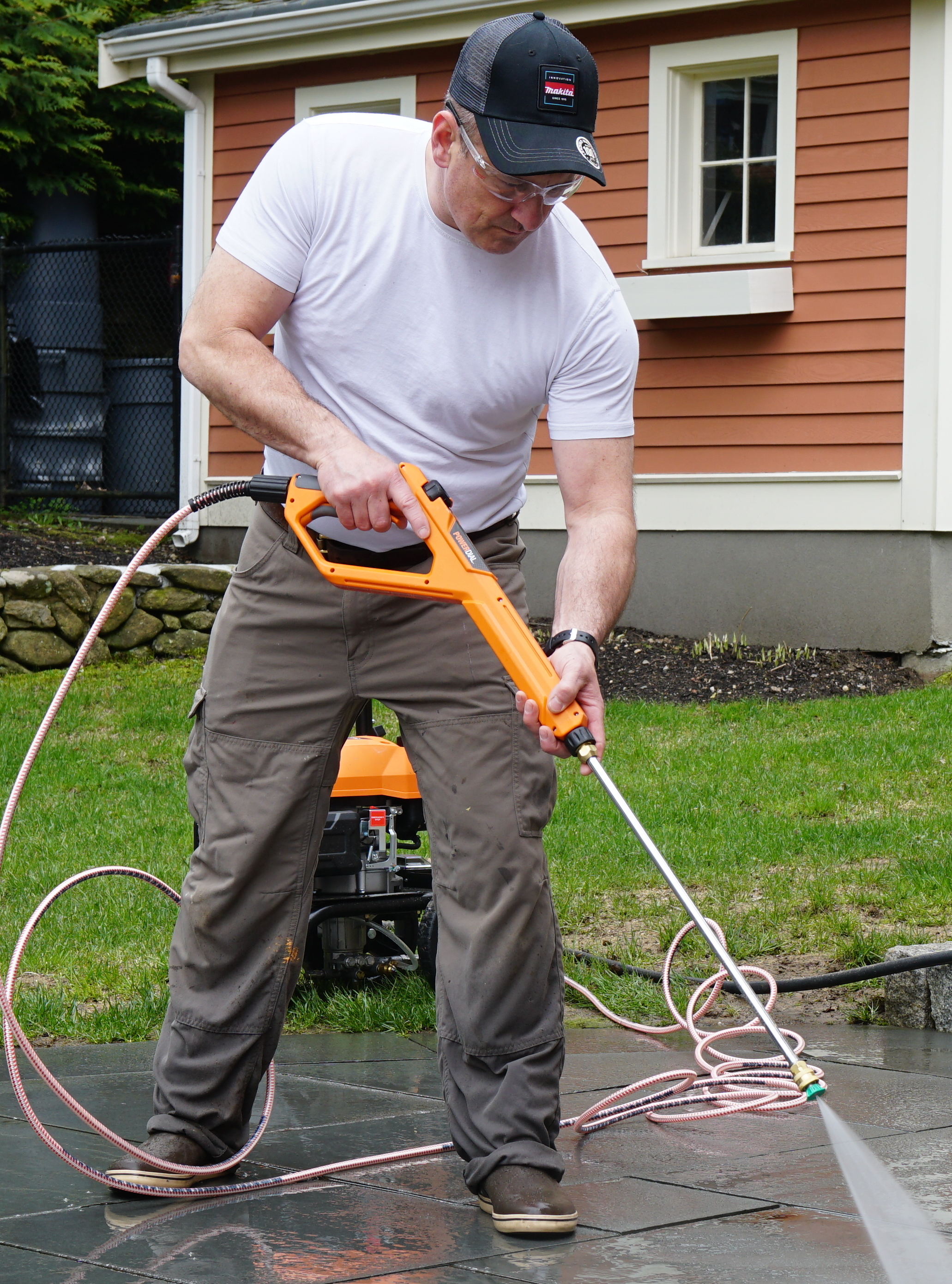 The least strenuous and faster way to clean granite is with a pressure washer. We use the Generac-SpeedWash-7122-Pressure-Attachments