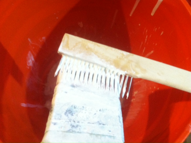 After giving the brush a good spin, until its almost dry to the touch, you can move the brush to the next pail. This stepped approach keeps the mineral spirits clean as you go and keep the solvents working as you get through your brushes.